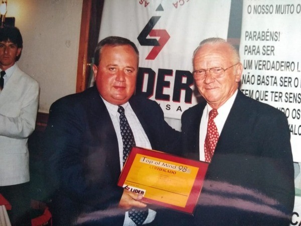 O momento é de 1998, e registra a presença de duas personalidades sempre marcantes na entrega do prêmio Top of Mind, em Gramado, durante anos consecutivos. No registro, destacamos o então proprietário do Jornal de Gramado, jornalista Gilberto Michaelsen, ao lado de Nelson Dinnebier, aquele que fora prefeito do município por três mandatos. Em campanha à reeleição, Dinnebier faleceu no dia 12 de setembro de 2000, aos 80 anos, sendo eleito em 1976, 1986 e 1996. Já Michaelsen, após a venda do periódico para o Grupo Sinos, aposentou-se e atualmente reside em Torres, no Litoral Norte.